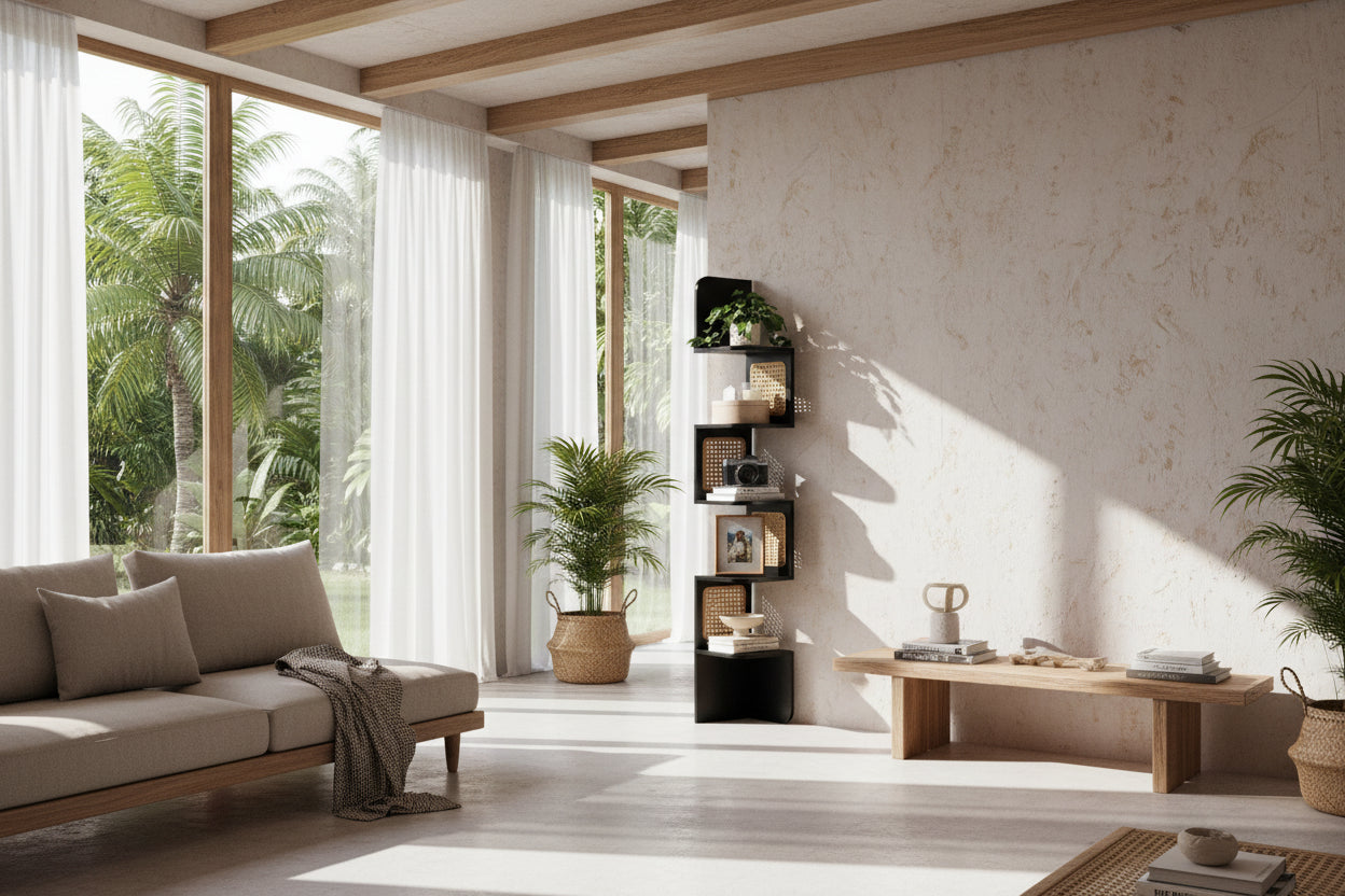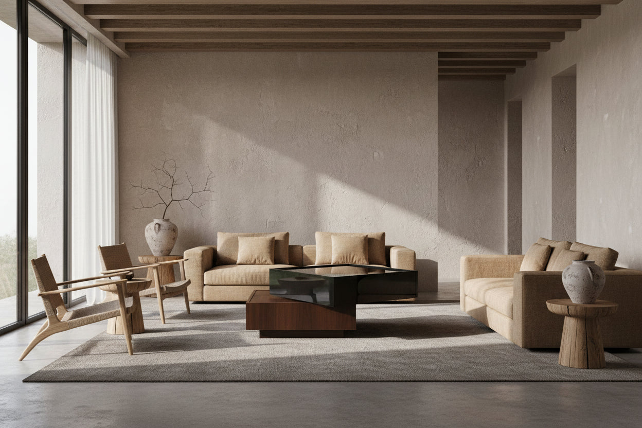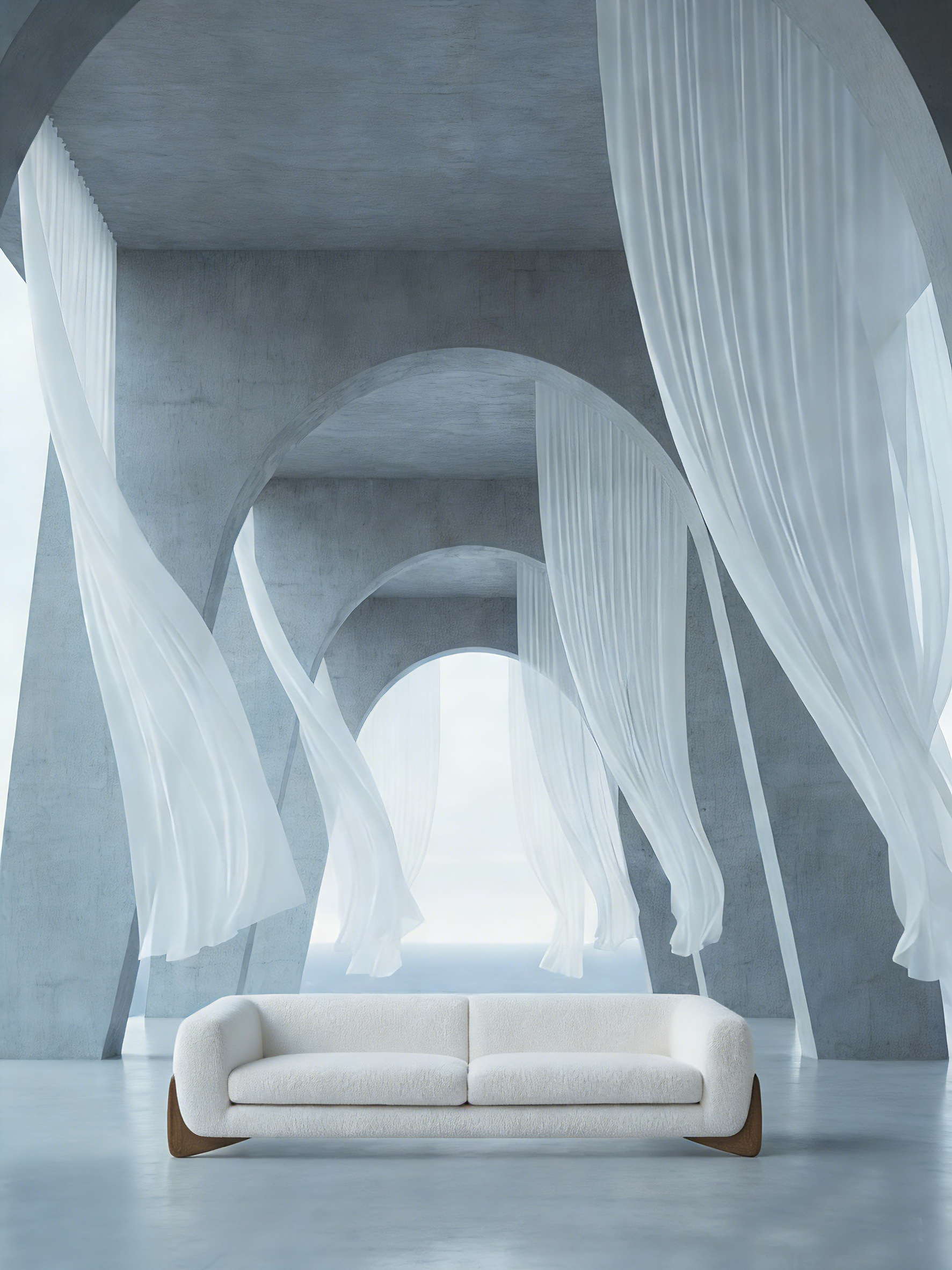 Suitable for Wabi-sabi and minimalist-style spaces, the lamb's wool material enhances the feeling of warmth, while the dark base balances the visual lightness, making it ideal for minimalist architectural spaces.